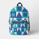 Teal Blue Square Triangle Geometric Printed Backpack original design by Nisha Prabhu. Make a bold statement with our Teal Blue Square Triangle Geometric Printed Backpack! This trendy backpack features a vibrant geometric design of squares and triangles in rich teal tones, making it the perfect accessory for school, work, or casual outings. With ample space and stylish flair, this backpack combines functionality with modern aesthetics. The contemporary geometric pattern adds a splash of colour and personality to your everyday look, ensuring you stand out from the crowd.