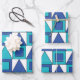 Teal Blue Square Triangle Geometric Wrapping Paper Sheet