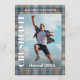 Unique and trendy congratulations graduate announcement and celebration party invitation card, framed with a stylish dark blue, grey, mustard yellow brown and white coloured plaid tartan background. With room to customise or personalise with a photo, the name of the graduate, class graduation year, high school, future college or university name, and celebration party event information. Let the family, friends and neighbours know there is a happy graduate ready to conquer the world, and invite everybody to come celebrate the happy event with you!