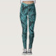 Teal blue tropical palm leaf botanical pattern fun leggings