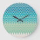Teal Blue, turquoise and Green Zigzags Large Clock