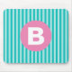 Teal Blue Vertical Striped Pink Circle Monogram Mouse Pad
