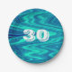 Teal Blue Waves Abstract 30th Birthday Custom Age Paper Plate