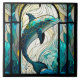 Teal Blue White Dolphin Faux Mosaic Stained Glass Ceramic Tile