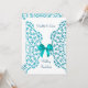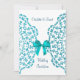 Very stylish and elegant invitation in teal blue and white with a pretty faux lace and ribbon design, These wedding invitations are all ready for you to personalise with your own wedding party celebration details.