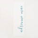 The front of this design is a pretty shade of blue, named "Mosaic Blue", with your name written in white script. The reverse side is white with your name in matching blue. Simple, yet elegant. Inspirational, yet calming. Enjoy.