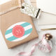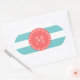 Teal Blue White Stripes Pattern, Coral Monogram Oval Sticker