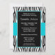 A sassy teal blue zebra design is featured on this trendy bridal shower invitation.