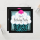 Teal Blue Zebra Girls Cupcake Birthday Party Invitation
