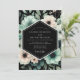 Experience a dark and romantic atmosphere with this elegant design. A stunning arrangement of dusty teal and soft blush florals blooms against a deep, dark background. Delicate white anemones, roses, and muted sage greenery create a moody, painterly composition for a sophisticated and dramatic union.