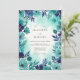 This design features a lush arrangement of watercolor anemones and delicate foliage in shades of teal, aqua, and deep navy blue. The artistic painterly style creates a fresh and vibrant atmosphere perfect for a coastal or seaside ceremony. Bold floral blooms pair beautifully with soft leaf accents to evoke a romantic and ethereal mood.