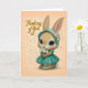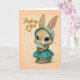 This enchanting “Thinking of You” card features a sweet baby bunny dressed in a teal bonnet and matching dress, holding a delicate bouquet of daisies. Surrounded by soft bubbles and a warm peach backdrop, her gentle expression brings comfort and heartfelt warmth to anyone who receives it. A perfect choice for offering support, sending love, or reminding someone they’re in your thoughts.
