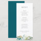 Teal Botanical Modern Elegant Wedding Menu