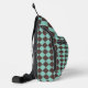 Teal Brown Chequered Diamond Pattern Sling Bag