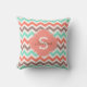 Teal,Brown,Coral Pink Zigzag Monogram Pattern Cushion