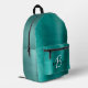 Teal Brushed Metal Black White Script Monogram Printed Backpack
