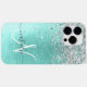 Teal Brushed Metal Silver Glitter Monogram Name Case-Mate iPhone Case