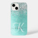 Teal Brushed Metal Silver Glitter Monogram Name iPhone Case