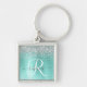 Teal Brushed Metal Silver Glitter Monogram Name Key Ring