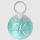 Teal Brushed Metal Silver Glitter Monogram Name Key Ring