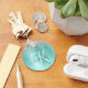 Easily personalize this trendy chic keychain design featuring pretty silver sparkling glitter on a teal brushed metallic background.