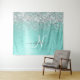 Teal Brushed Metal Silver Glitter Monogram Name Tapestry