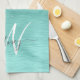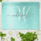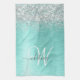 Teal Brushed Metal Silver Glitter Monogram Name Tea Towel