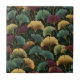 Teal Burgundy Ginkgo Pattern Ceramic Tile