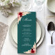Whether you're planning a rustic outdoor wedding or an elegant indoor celebration, our menu card is a versatile and stylish choice. Pair it with our matching invitations, table numbers, welcome banner and place cards to create a cohesive and memorable look for your special day. Find matching products in the Teal Burgundy Tropical Rose Garden Wedding Collection.