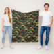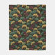 Teal Burgundy Vintage Ginkgo Leaf Pattern Fleece Blanket