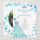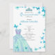 Teal Butterflies Dress Tiara Photo Quinceanera Invitation