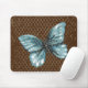 Teal Butterfly in Chain Link Fence Design Mouse Pad
