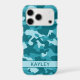 Customize this teal camouflage iPhone 17 pro case with your name in a trendy modern CAP font in dark teal on light teal. It's so modern, girly and trendy! Perfect for any country girl!