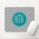 Teal Charcoal Chevrons Custom Monogram Mouse Pad