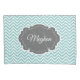 Add a touch of colour to your bedroom with a Teal Chevron Pillow Case you can personalise. Pillow case design features a teal chevron background and an ornate grey tag to personalise with your name and monogram. Additional items available with this design as well. Please contact me directly for assistance with personalisation.