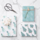Teal Christmas Snowman and Trees Wrapping Paper Sheet