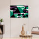 Teal Colour Modern Abstract Fractal Art Poster