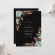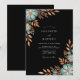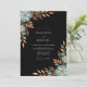 This design features delicate teal floral elements accented with warm copper foliage, creating an elegant and romantic aesthetic. The artistic composition evokes a feeling of refined beauty, perfect for a sophisticated event. The prominent colors are teal and copper with a dark background.