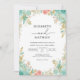 Delicate floral elements in soft teal and coral hues frame this elegant design. The gentle archway evokes a sense of romantic bloom and natural beauty, perfect for a serene outdoor occasion.