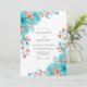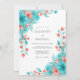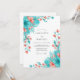A delicate watercolor design featuring vibrant teal and coral blooms with lush greenery. This artistic arrangement evokes a romantic and ethereal mood, perfect for a special occasion. The hand-painted style adds a touch of sophistication and charm.
