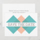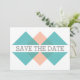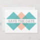 Modern and chic Geometric Triad Save the Date Announcement featuring a stylish triangle design in turquoise and orange. Easy to customise, this simple yet elegant design may be personalised with your wedding details. Click "Customise It" to find more personalisation options.