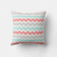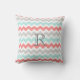 Teal Coral Grey Chevrons Pattern Monogram Pillow