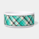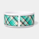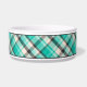 Lovely plaid pattern in turquoise, cream and dark grey colour scheme. There is also an oval shape banner that has a personalizable text area for the name of the pet. The font is a nice script font in dark grey colour.