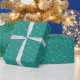Outlines of small hand drawn crystals and sparkles on a teal background. Great for wrapping a Halloween treat!