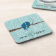 Teal Cute Kissing Love Birds Sitting in Bird Cage Coaster
