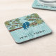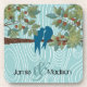 Teal Cute Kissing Love Birds Sitting in Bird Cage Coaster