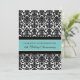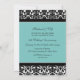 10th wedding anniversary party invitation card in elegant turquoise blue, black and white modern floral damask pattern, delicate and contemporary. Customisable with your party details.