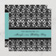 Custom 21st Birthday party invitations in elegant turquoise blue, black and white classic floral damask pattern. Add your name and party details for a unique and stylish 21st birthday party invitation.