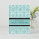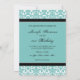 Custom 21st Birthday party invitations in elegant turquoise blue, black and white classic floral damask pattern. Add your name and party details for a unique and stylish 21st birthday party invitation.