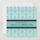 Custom 21st Birthday party invitations in elegant turquoise blue, black and white classic floral damask pattern. Add your name and party details for a unique and stylish 21st birthday party invitation.
